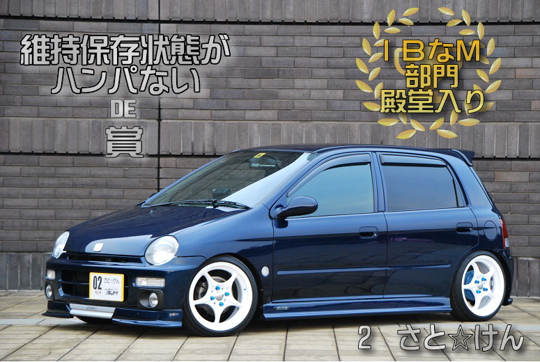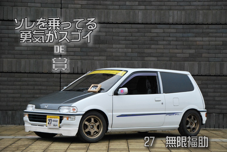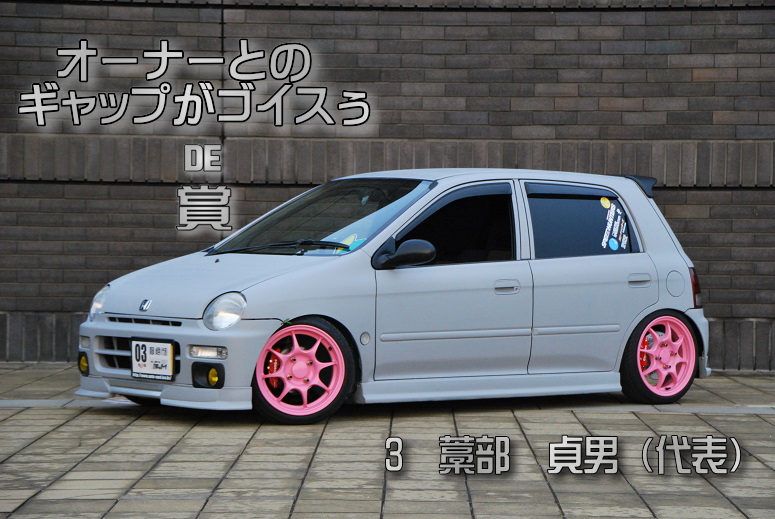 | イベントそのA☆「投票表彰の儀」! 当日イベントAとしまして、「投票表彰の儀」を実施いたしました。 「投票表彰の儀」結果発表 審査項目@ ドレスアップされて「センス」を感じる「カッコイイ〜」と思ったクルマは? @ ドレスアップ部門 1位 ![]() @ ドレスアップ部門 2位 ![]() @ ドレスアップ部門 3位 ![]() 審査項目A 見るからに「改造」されていて「速そうだな〜」と思ったクルマは? A ハイスピード部門 1位 ![]() A ハイスピード部門 2位 ![]() A ハイスピード部門 3位 ![]() 審査項目B メンテナンス状態や程度がよく「保存状態」が「すごいなぁ〜」と思ったクルマは? C 走ってる事が不思議「実際に走らせてるのスゴイなぁ〜」と思ったクルマは? ![]() D 車を作るのに相当「費用」が「かかってるんだろうなぁ〜」と思ったクルマは? ![]() E オリジナリティー「自作」「流用」満載「こだわってるな〜」と思ったクルマは? ![]() F 見るからに「関わりたくない」「ややこしそうぉ〜♪」と思ったクルマは? ![]() G ほぼノーマルかな?「普通に乗って楽しんでるだなぁ〜」と思ったクルマは? ![]() H 車の「オーナーさん」が「え?アノ方が嘘でしょ?」とギャップを感じた方のクルマは? ![]() 特別賞 初度登録より20年経過車両(エントリー用紙申告より選出) ![]() 受賞者の皆様、おめでとうございます!! |