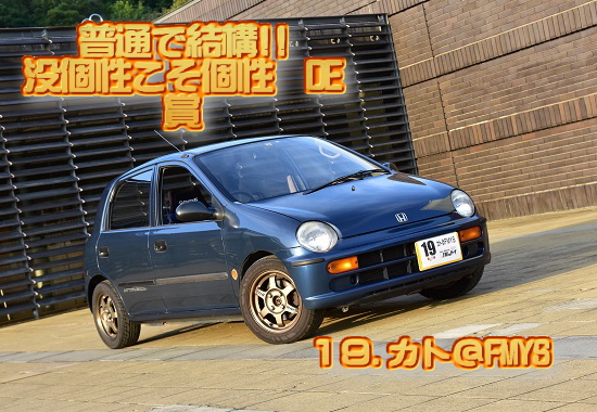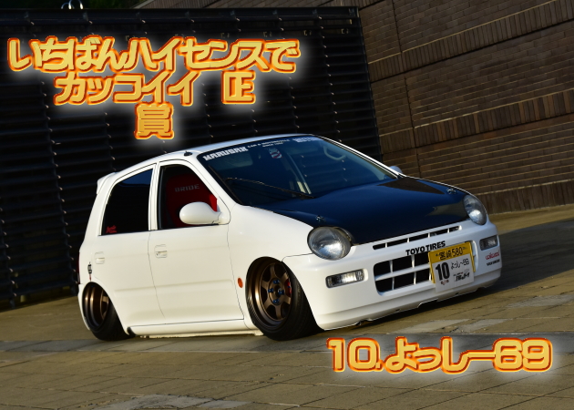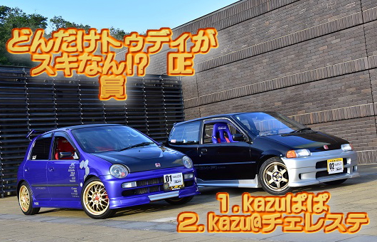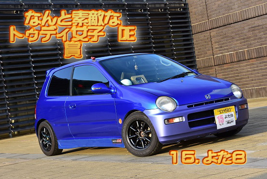 | イベントそのA☆「投票表彰の儀」につきまして!! 当日イベントAとしまして、「投票表彰の儀」を実施いたしました。 「投票表彰の儀」結果発表 審査項目@ ドレスアップされて「センス」を感じる「カッコイイ〜」と思ったクルマは? @ ドレスアップ部門 1位 ![]() @ ドレスアップ部門 2位 ![]() @ ドレスアップ部門 3位 ![]() 審査項目A 見るからに「改造」されていて「速そうだな〜」と思ったクルマは? A ハイスピード部門 1位 ![]() A ハイスピード部門 2位 ![]() A ハイスピード部門 3位 ![]() 審査項目B メンテナンス状態や程度がよく「保存状態」が「すごいなぁ〜」と思ったクルマは? ![]() C 走ってる事が不思議「実際に走らせてるのスゴイなぁ〜」と思ったクルマは? ![]() D 車を作るのに相当「費用」が「かかってるんだろうなぁ〜」と思ったクルマは? ![]() E オリジナリティー「自作」「流用」満載「こだわってるな〜」と思ったクルマは? ![]() F 見るからに「関わりたくない」「ややこしそうぉ〜♪」と思ったクルマは? ![]() G ほぼノーマルかな?「普通に乗って楽しんでるだなぁ〜」と思ったクルマは? ![]() H 車の「オーナーさん」が「え?アノ方が嘘でしょ?」とギャップを感じた方のクルマは? ![]() 特別賞 どんだけトゥディがスキなん!? DE 賞 ![]() 特別賞 なんと素敵なトゥディ女子 DE 賞 ![]() ![]() ![]() 受賞者の皆様、おめでとうございます!! |